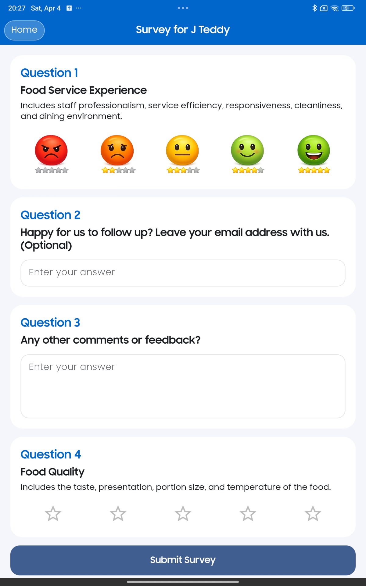 The survey format can be customized into any layout, including simple emoji-based feedback, rating systems, or multiple-question forms