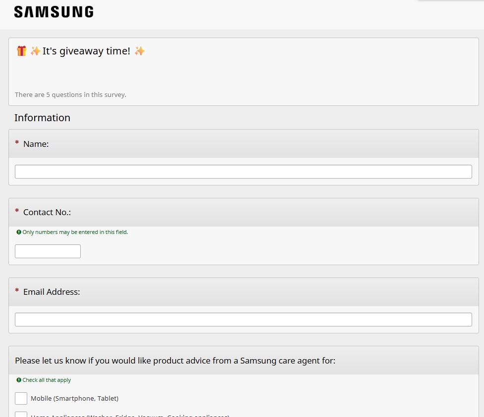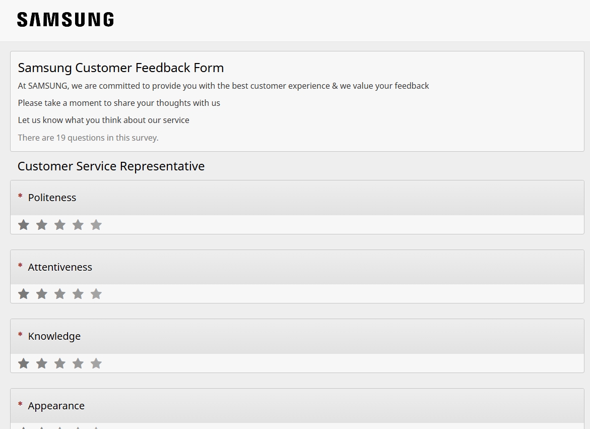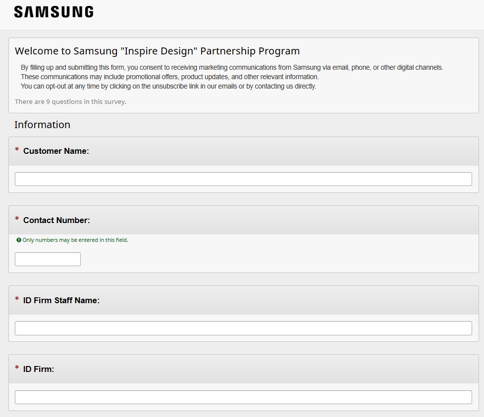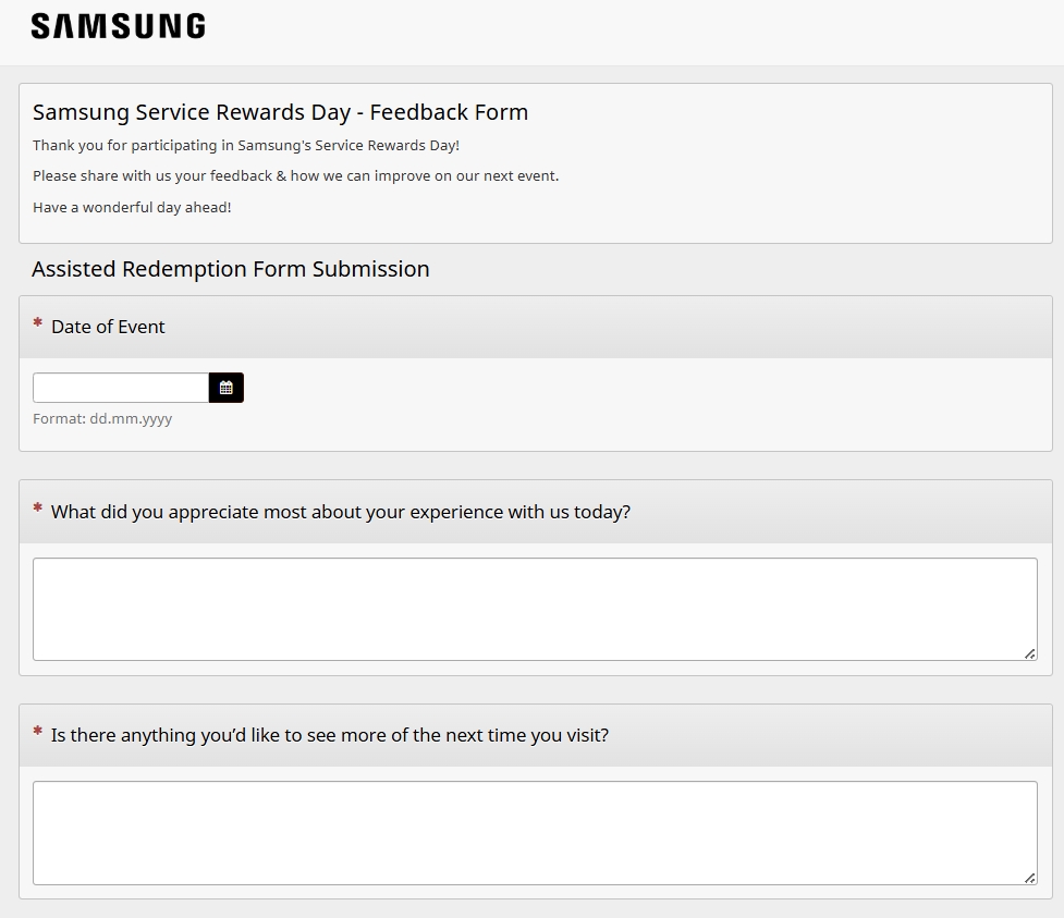Samsung Singapore has been one of the users of Fort Digital Feedback System for many years. We have customized the system for many different uses, such as the Welcome to Samsung “Inspire Design” Partnership Program, Samsung Service Rewards Day Feedback Form, Samsung Customer Feedback, and many more.