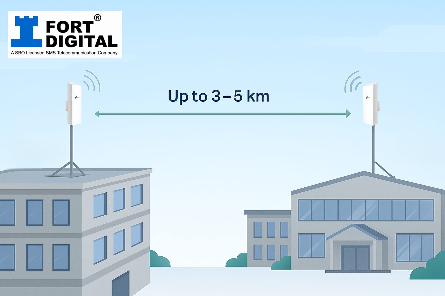 We can connect two locations up to 5 km apart with no cabling in between, delivering internet from Location A to Location B wirelessly. The connection can still provide speeds of up to 500 Mbps at Location B. Contact us today for site testing and consultation.