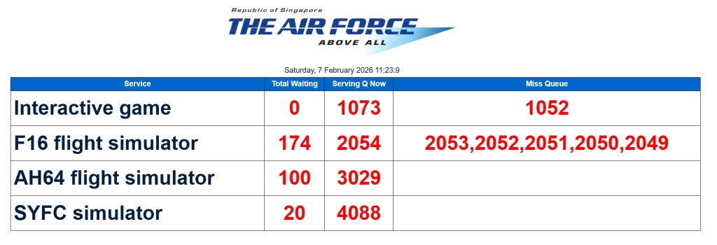 At the Singapore Airshow 2026, a fast and efficient queue system was set up at the Singapore Air Force booth to manage guests for its interactive games. Visitors could join the queue by scanning a QR code via a Web Ticket Kiosk or by receiving a printed ticket from a Physical Ticket Kiosk. The entire system was deployed and fully operational within just 30 minutes.