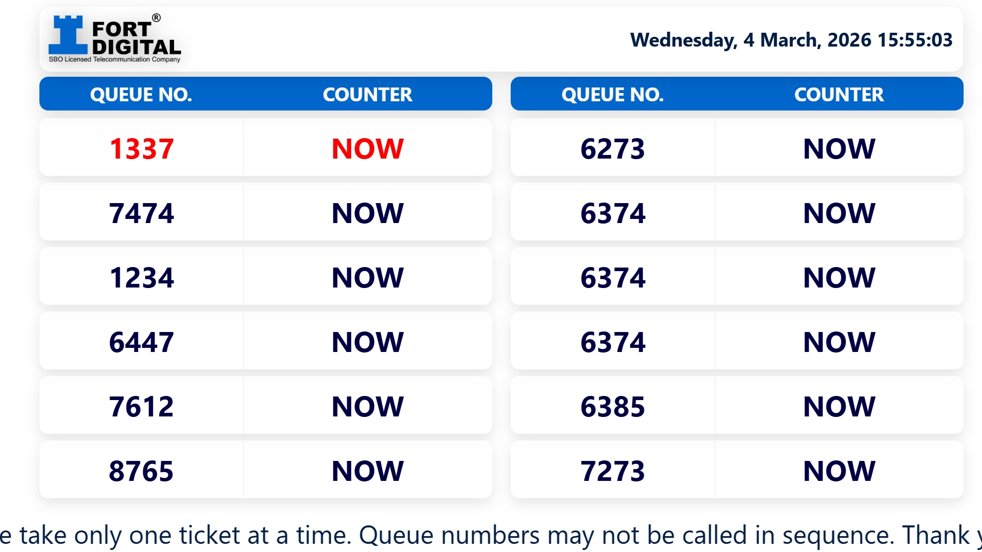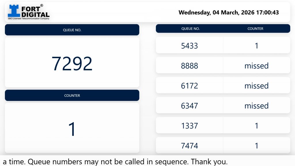 Fort Digital Queue System is rock-solid reliable! Years of use, virtually no downtime. It’s also half the cost of conventional systems. Plus, their WhatsApp Support is lightning-fast!