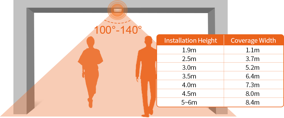For best accuracy, install the system at a minimum height of 2 meters. Mounting it higher increases the field of view and reduces occlusion, allowing it to cover a larger area.