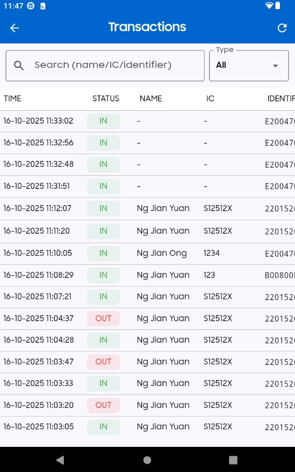 The interface is designed to be as simple as possible. Users just tap Check In or Check Out, then scan their IC barcode or tap their NFC card, and that’s it. The whole process takes less than 5 seconds.